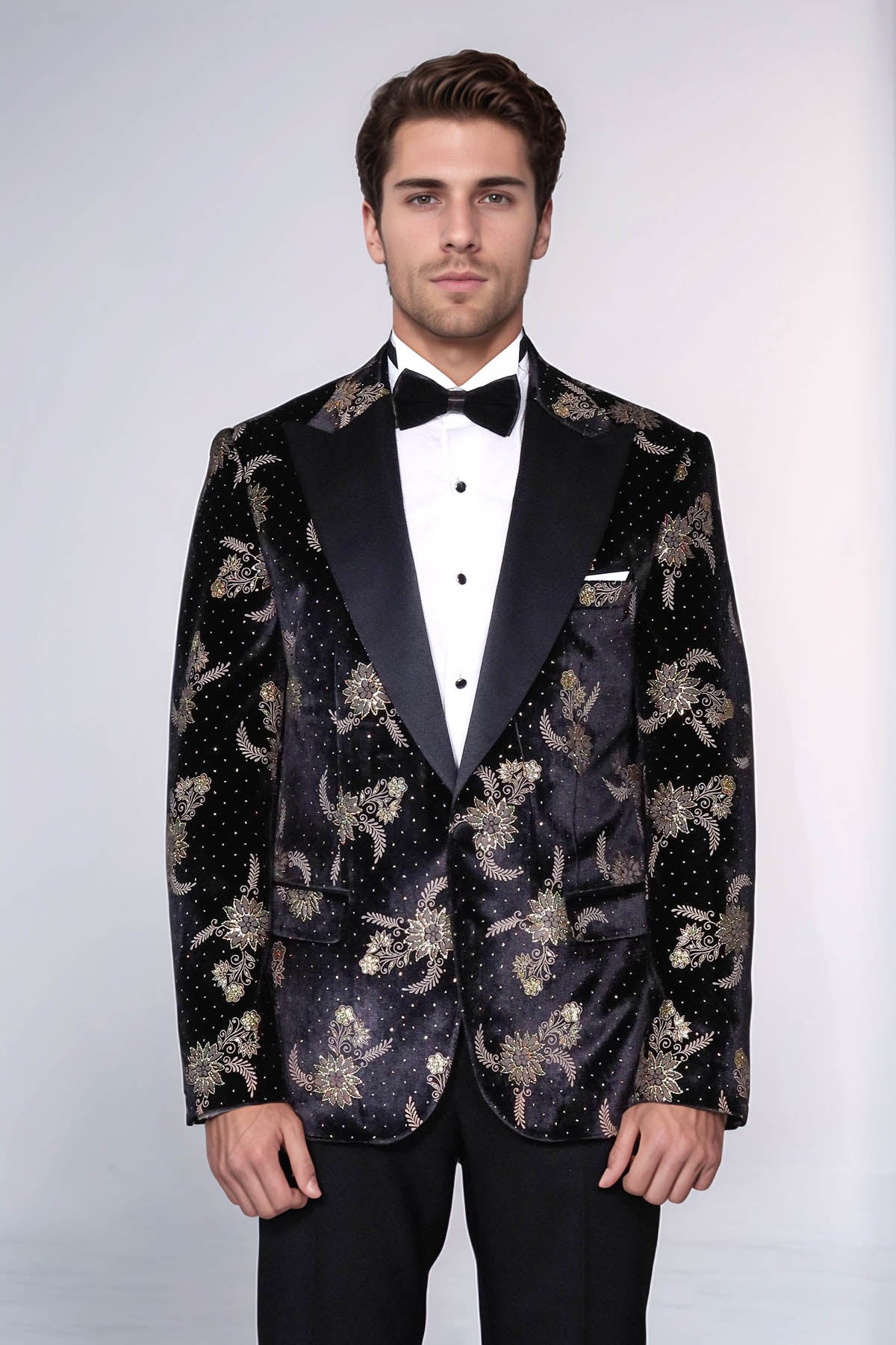 WSS Dot Floral Patterned Velvet Black Men Prom Blazer - Albstadt