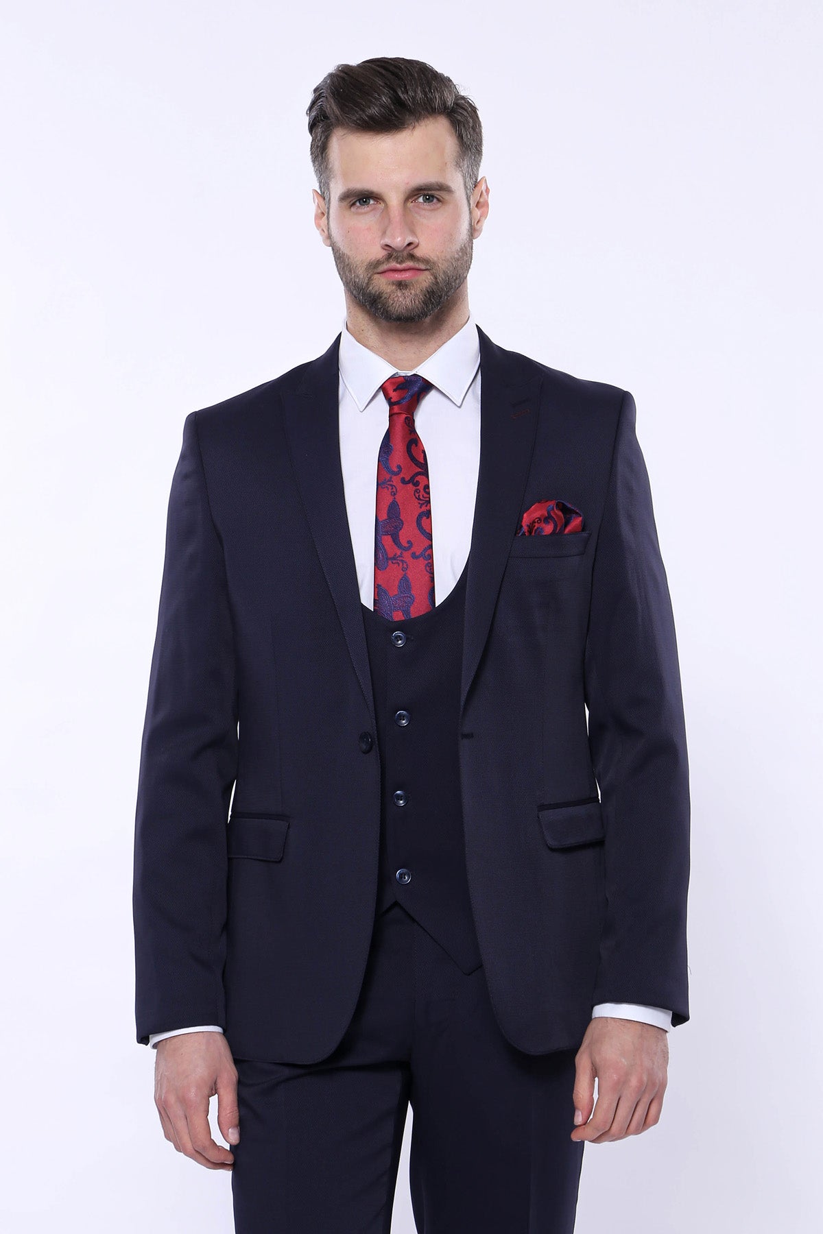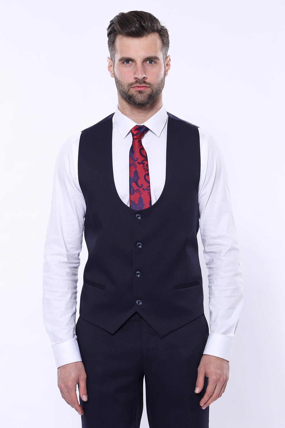 If you are unsure about the suit, you can take a look at thePatterned Navy Blue Vested Suit, which you can get the best answers to your expectations. While you are making choices that you can feel good, you should act according to certain dimensions. We convey that you can find even the smallest details that need attention. We emphasize that you can make the best choices immediately with their size and visuality among the suit types. We state that you will not seek any further thanks to the jacket and trousers molds being exactly what you want. Accordingly, you can immediately meet the models that will be the savior of your most special days. If you pay attention to the rules required for men's suit selection, you can order unique products. With affordable suits, you can quickly buy models that meet every criterion you are looking for.