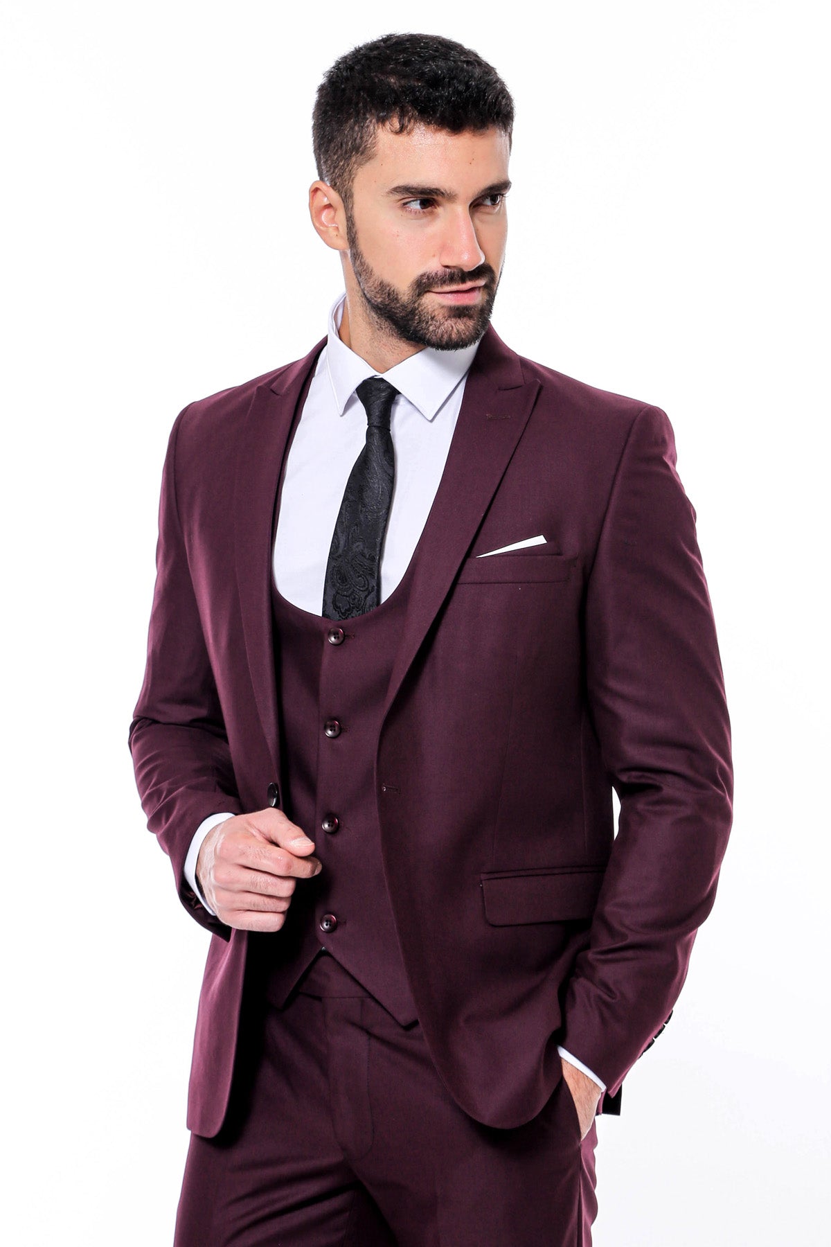 WSS Plain Slim Fit Burgundy Men Suit - Vista