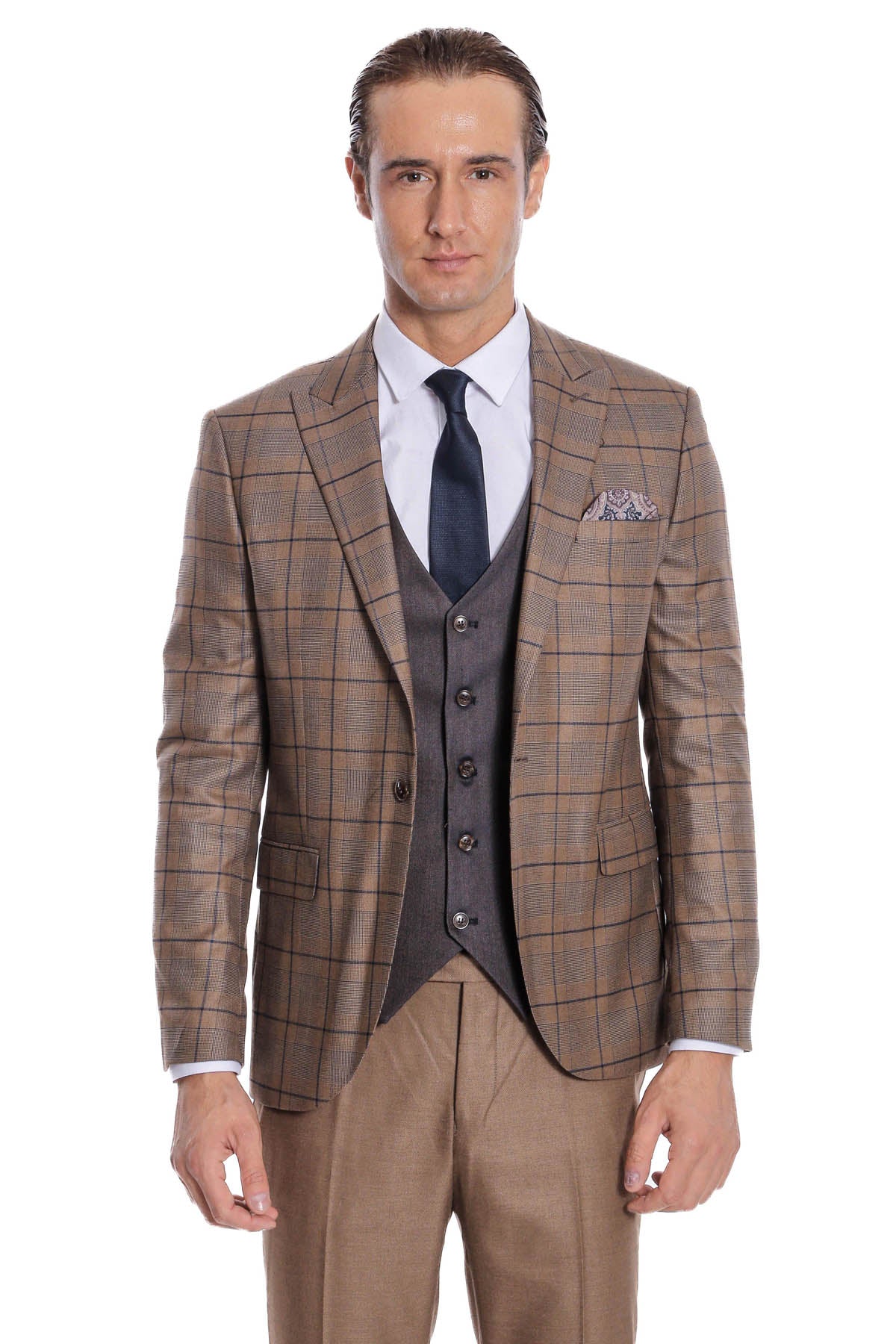 WSS Slim Fit Checked Brown Men Suit - Oldenburg
