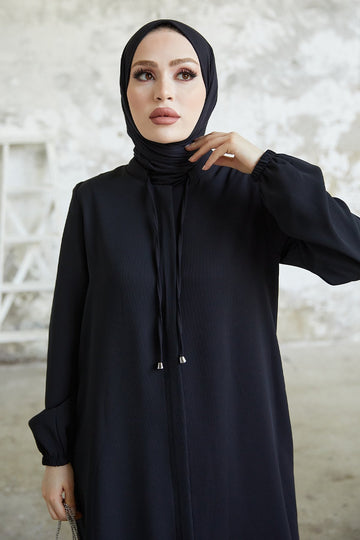 MDS Women Laced Hidden Button Abaya - Black - Goes