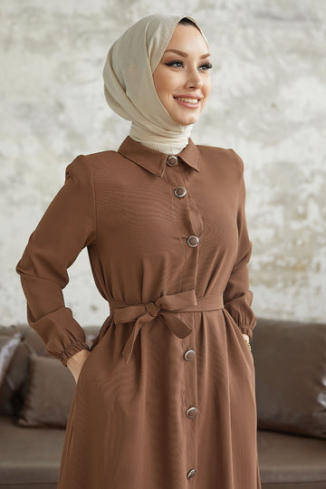 MDS Women Linny Buttoned Shirt Collar Abaya - Brown - Sfântu-Gheorghe