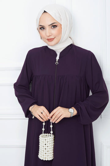 MDS Women Pleated Medina Silk Abaya - Purple - El Dorado