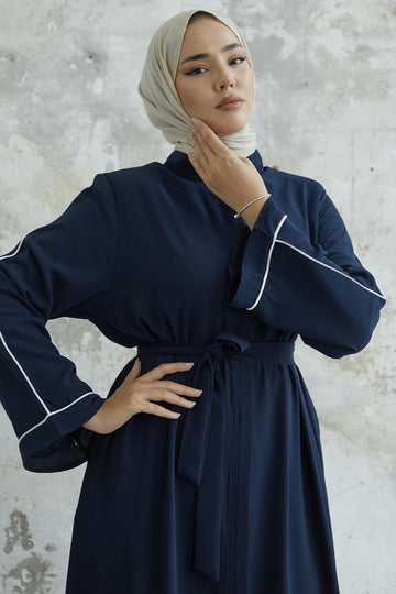 MDS Women Salvia Loose Sleeve Biye Patterned Abaya - Navy - Wesseling