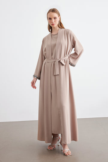 The product consists of 3 pieces including a belt. The inner dress has zero sleeves.