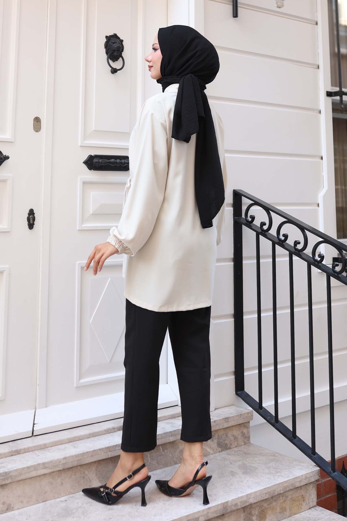 Product Feature: The product is true to size, you can choose your regular size. Product Information: Length: 76 cm, Chest: 100 cm, Waist: 90 cm. Fabric Type: 80% Polyester, 20% Cotton. Model Measurements: Height: 166 cm, Chest: 90 cm, Waist: 71 cm, Hips: 91 cm. The product on the model is size S-M. There may be a slight color difference due to concept shots in the product color.