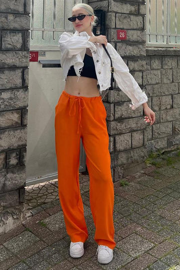 MDX Orange Crinkle Fabric Basic Women's Beach Pants MG1778 - Acambay