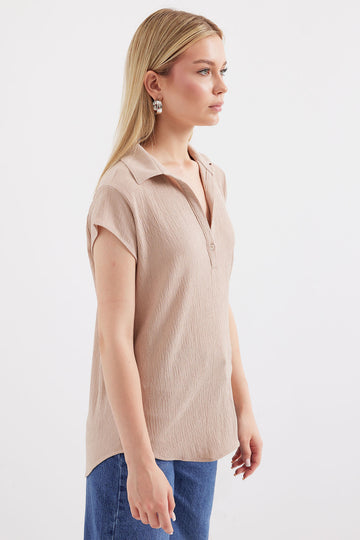 BGD Women Polo Neck Knit Blouse - Beige - Avondale