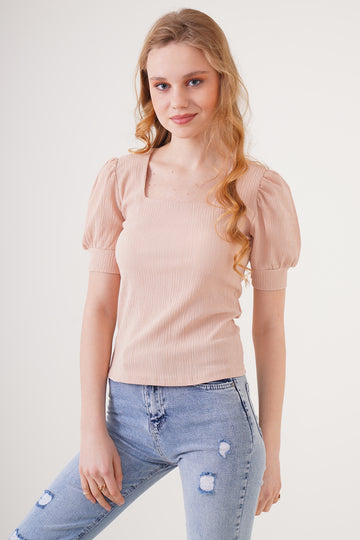 BGD Women Square Neck Knitted Blouse - Biscuit - Avondale
