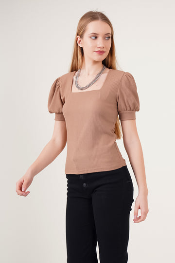BGD Women Square Neck Knitted Blouse - Brown. - Avondale