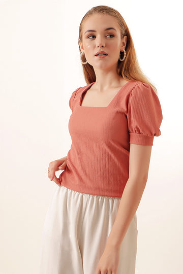 BGD Women Square Neck Knitted Blouse - Rose Pink - Avondale