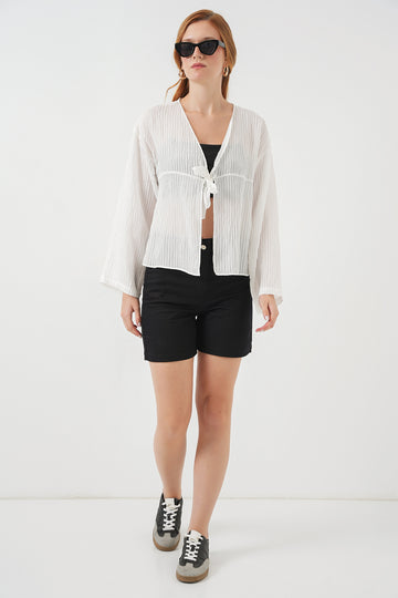 BGD Women Women's Front Lace-Up Blouse 952 - White - Wollongong
