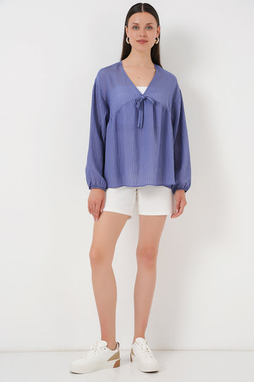 BGD Women Women's Front Lace-Up Long Sleeve Blouse 946 - Indigo - Villareal