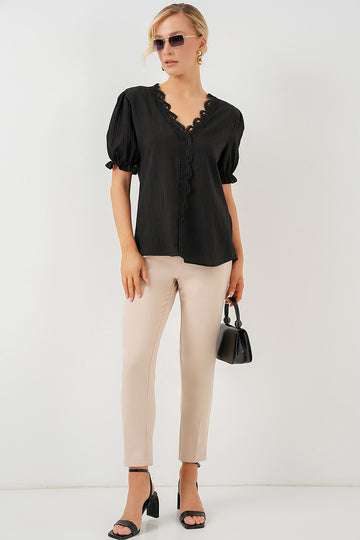 BGD Women Women's V-Neck Lace Blouse 956 - Black - Roeselare