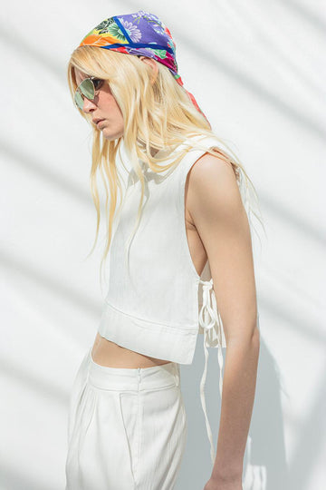 BSL Women Crop Linen Blouse with Side Tie - Alghero