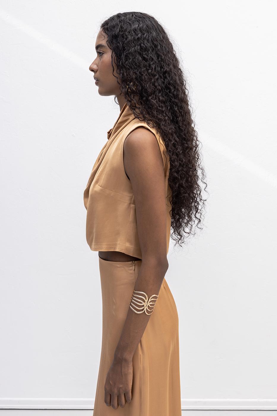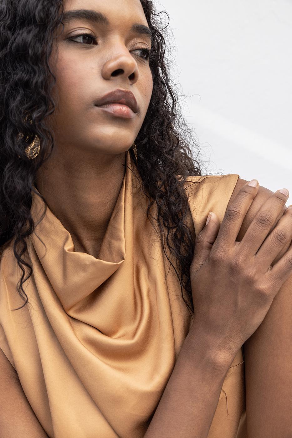 BSL Women Satin Blouse with Plunging Collar - Elmshorn