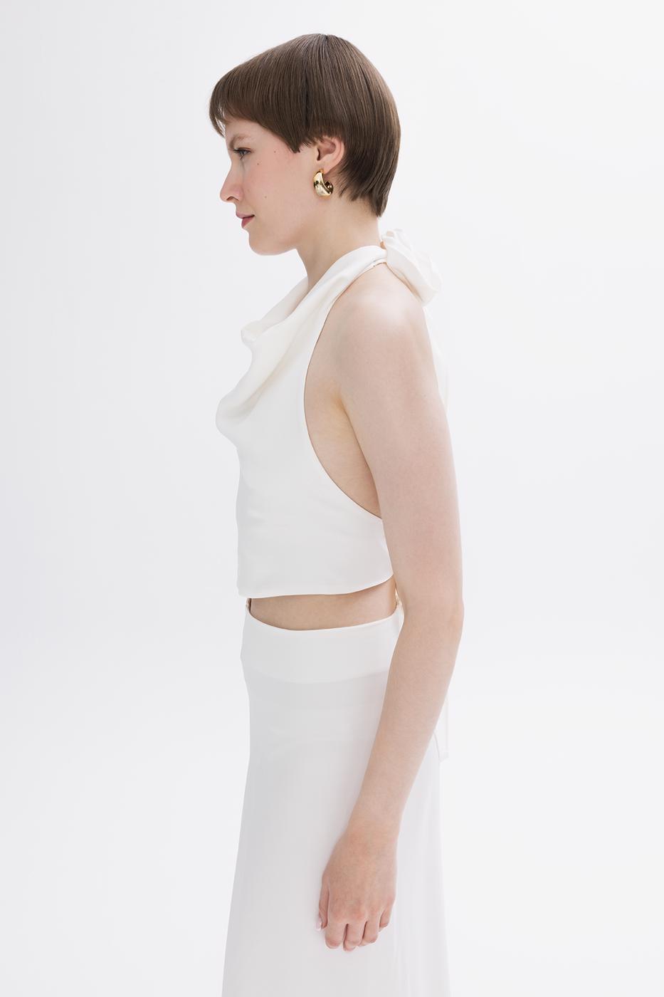 BSL Women Satin Blouse with Plunging Collar - Madera