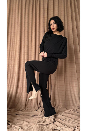 ELS Pleated Detailed Blouse and Pants Set - Black - Hemel Hempstead
