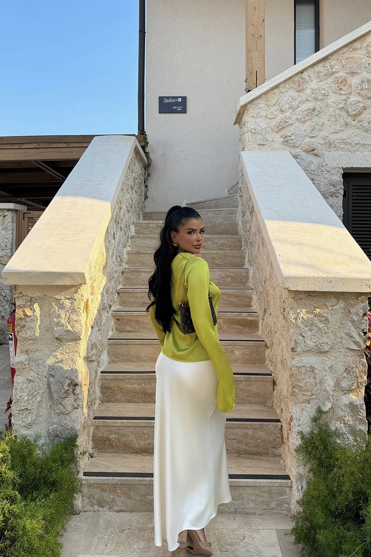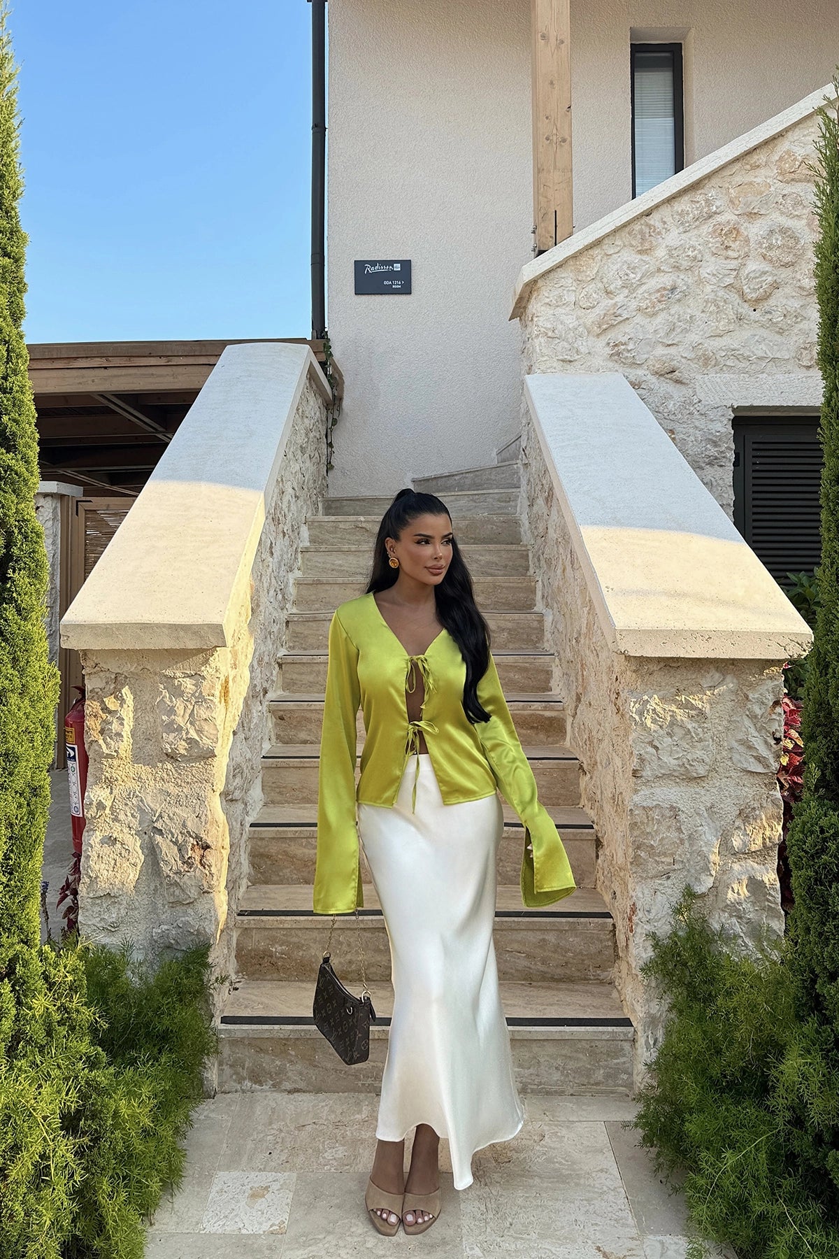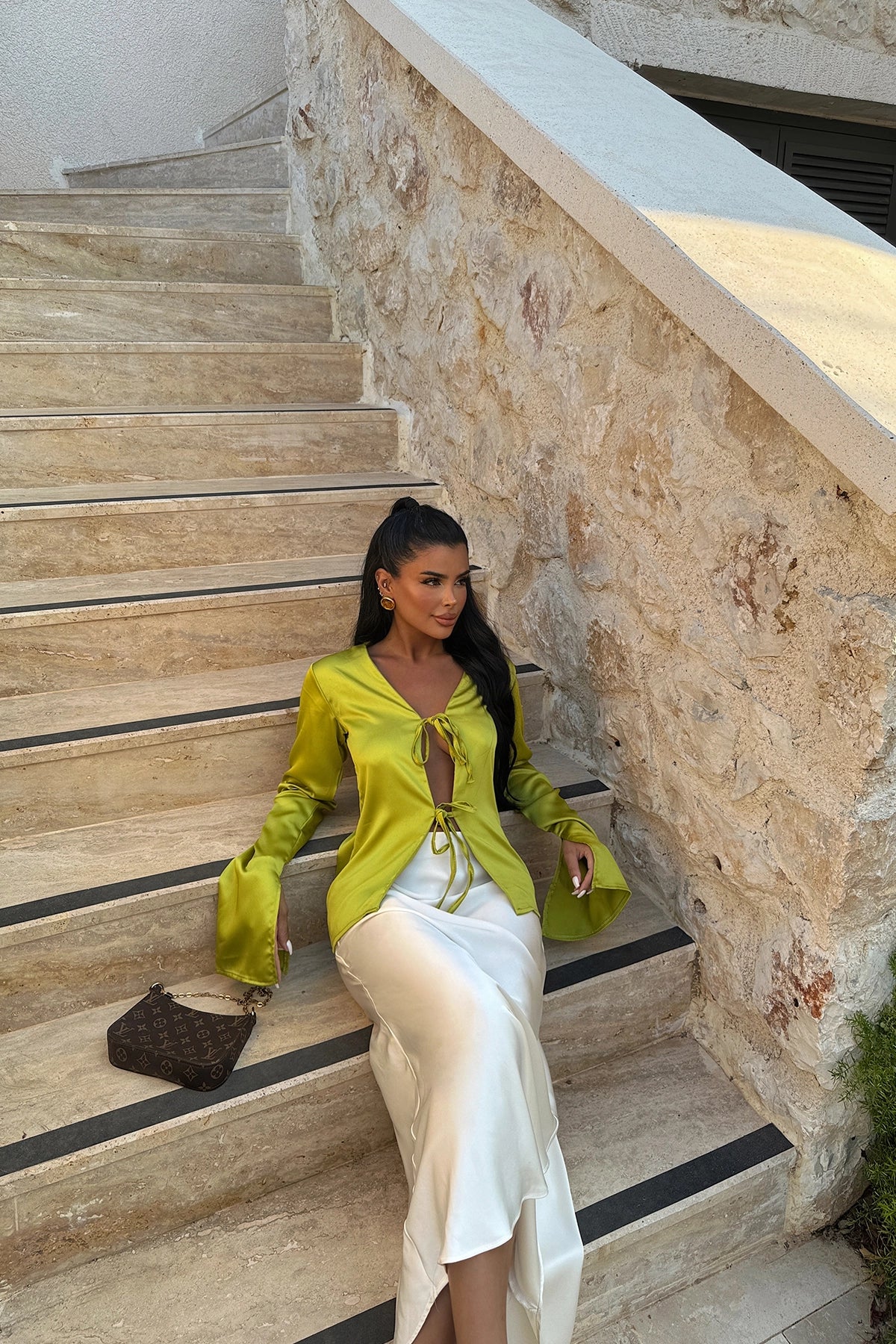 EYY Women Oil Green Gredel Satin Blouse - Balingen