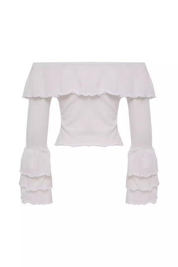 FRV White triko long sleeve blouse - Merthyr Tudful
