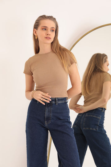 KKT Camisole Fabric Short Sleeve Basic Women's Blouse-Beige - Tokyo