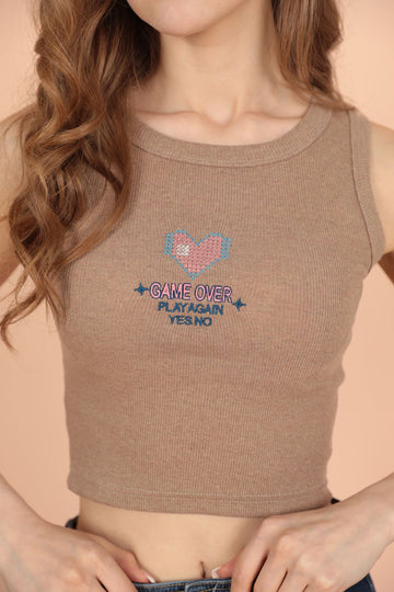 KKT Game Over Embroidered Women's Blouse-Beige - Clifton