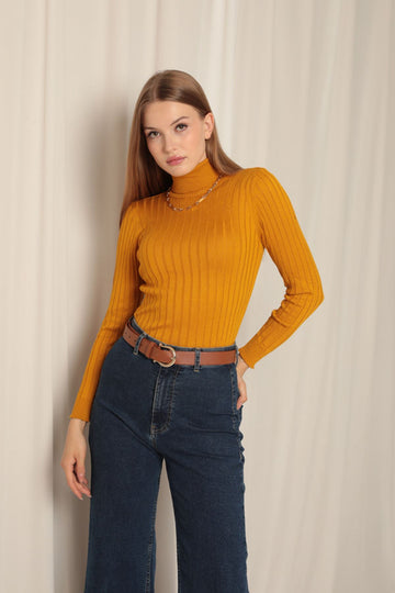 KKT Knitwear Fabric Turtleneck Women's Mustard Blouse - Târgu-Mureş