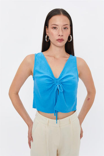 RYN Ruffled Tie Blouse - BLUE - Capelle aan den IJssel