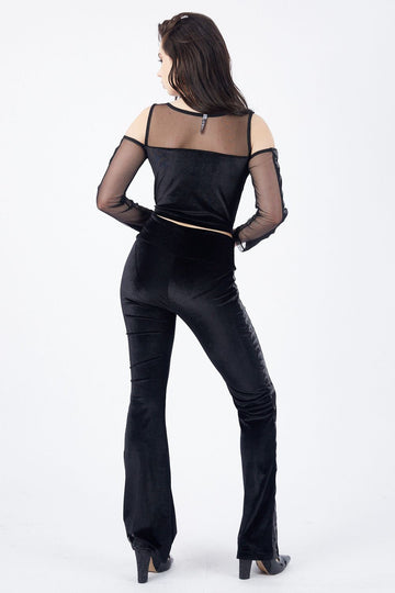 SNS Black Front Back Top with Tulle Sequin Stripe Front Back Bottom Velvet Long Sleeve Blouse - Ponce