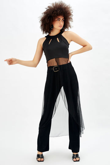 SNS Sense Black Chiffon Plunging Blouse Evening Blouse - Silves