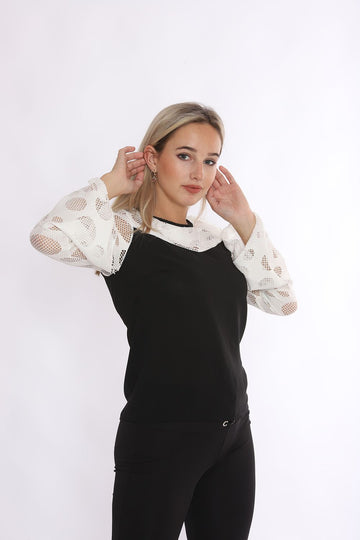 SNS Sense Black Collar and Front Lace Evening Blouse - Roermond