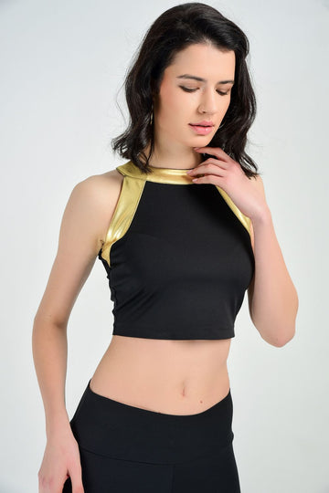 SNS Sense Bustier Gold-Black Garnished Back Zippered Blouse - Slough
