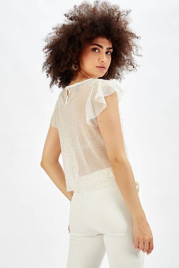 SNS Sense Ecru Varak Printed Ruffled Mini Sleeve Evening Blouse - Arles