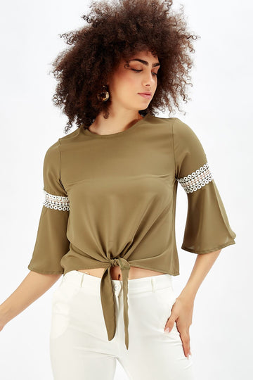 SNS Sense Hakı Sleeve Lace Evening Blouse - Lebanon