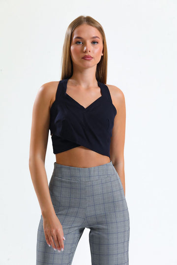 SNS Sense Lacivert Back Zippered Decollete Crepe Blouse - New York