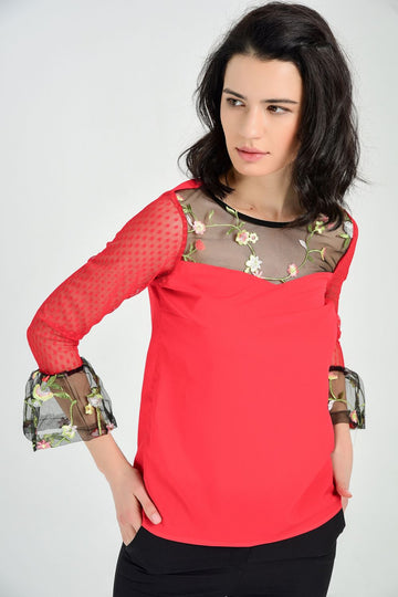 SNS Sense Red Blouse with Polka Dot Tulle Sleeves - Arucas