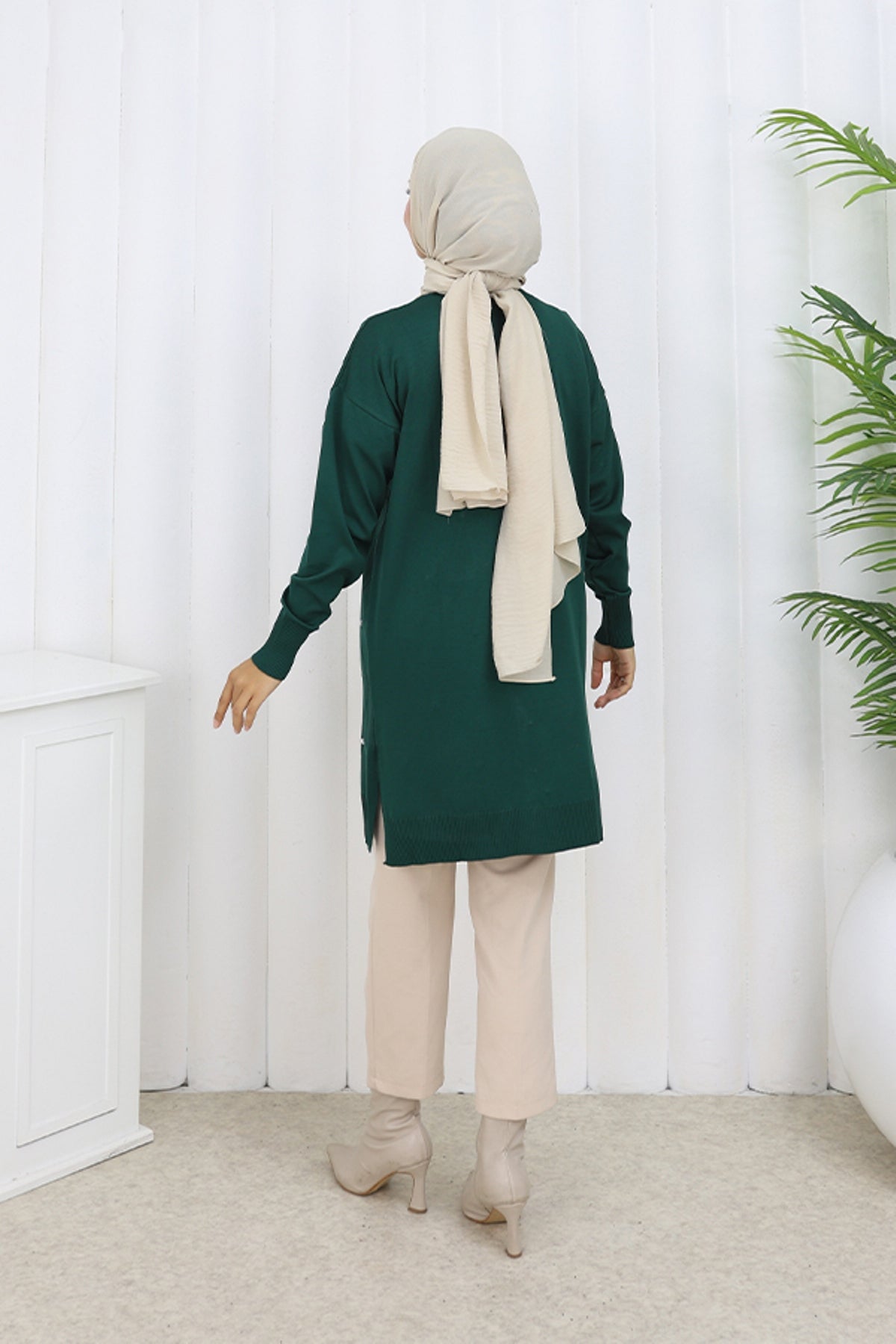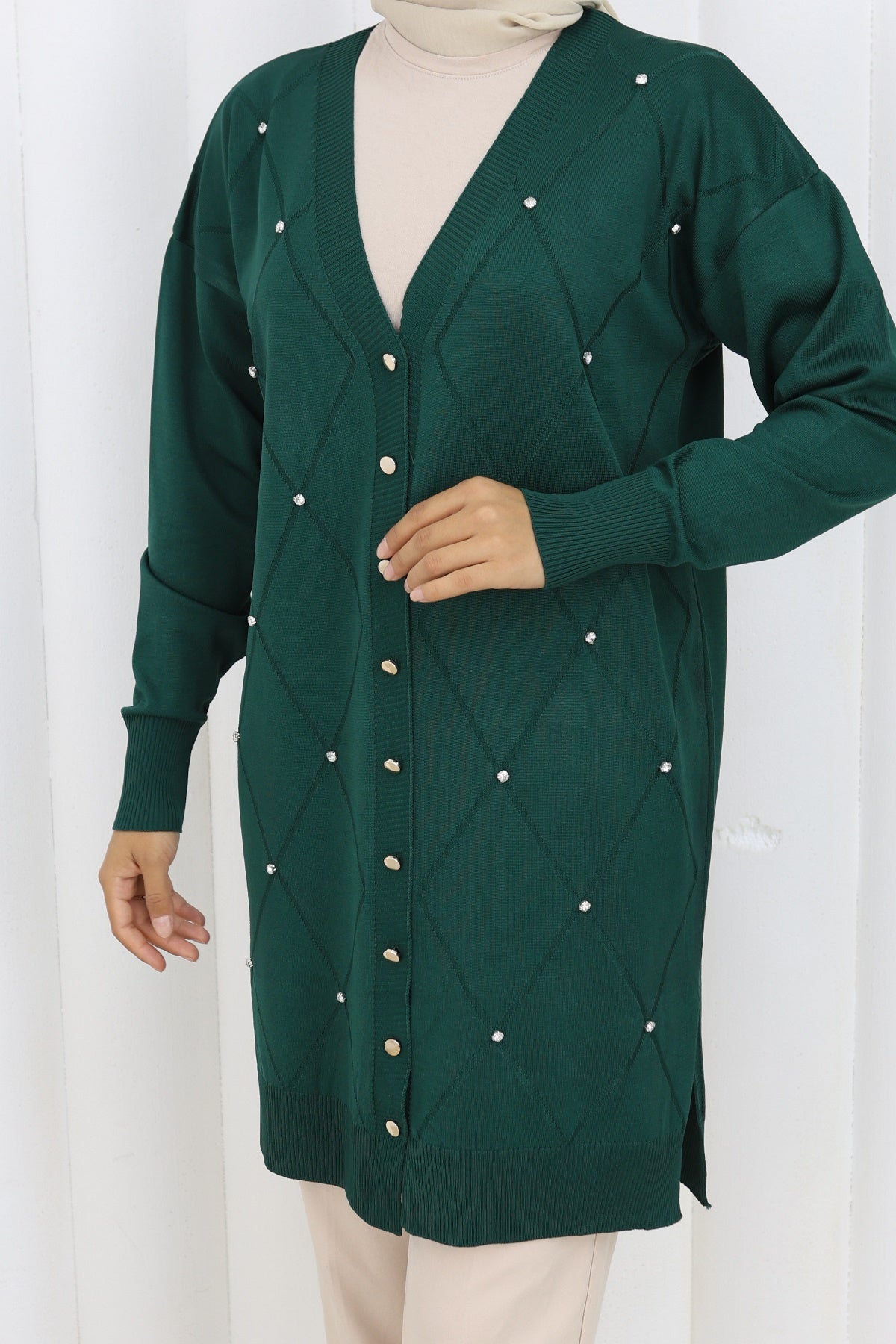 BNG Women Stone-embellished Baklava Pattern Long Cardigan N3246 Emerald Green - Blainville