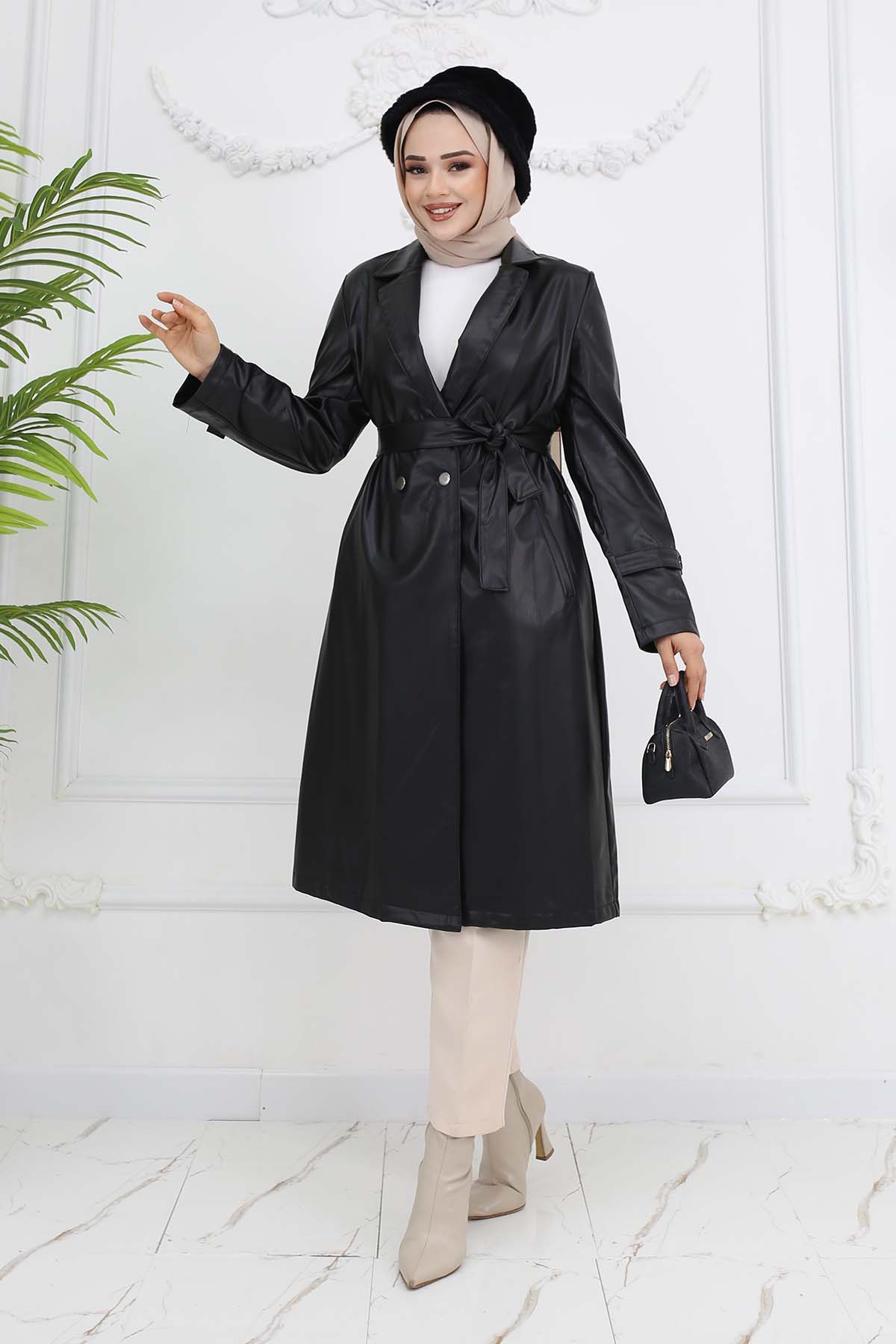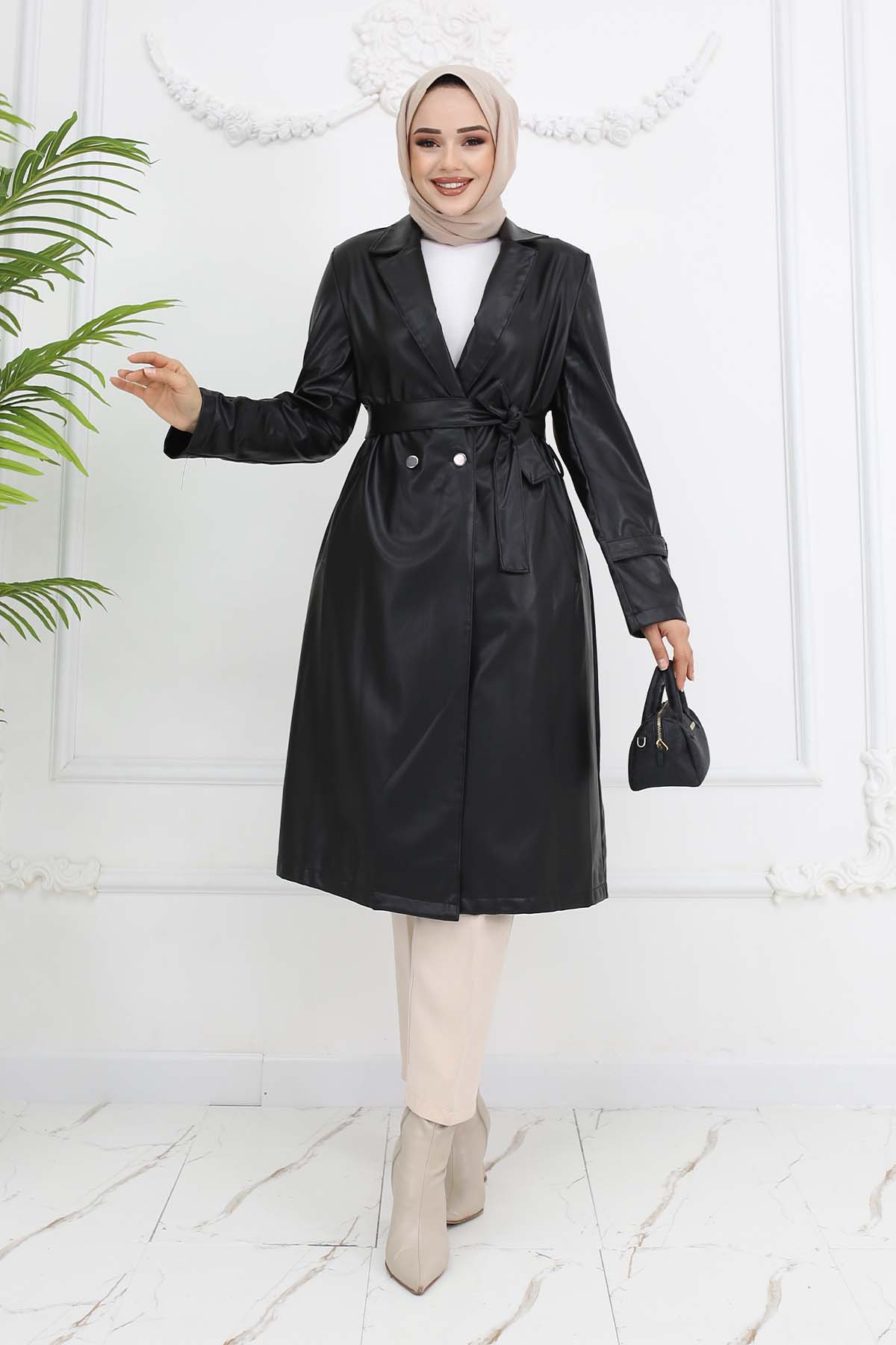 BNG Women Leather Trench Coat Black 4953 - Bountiful