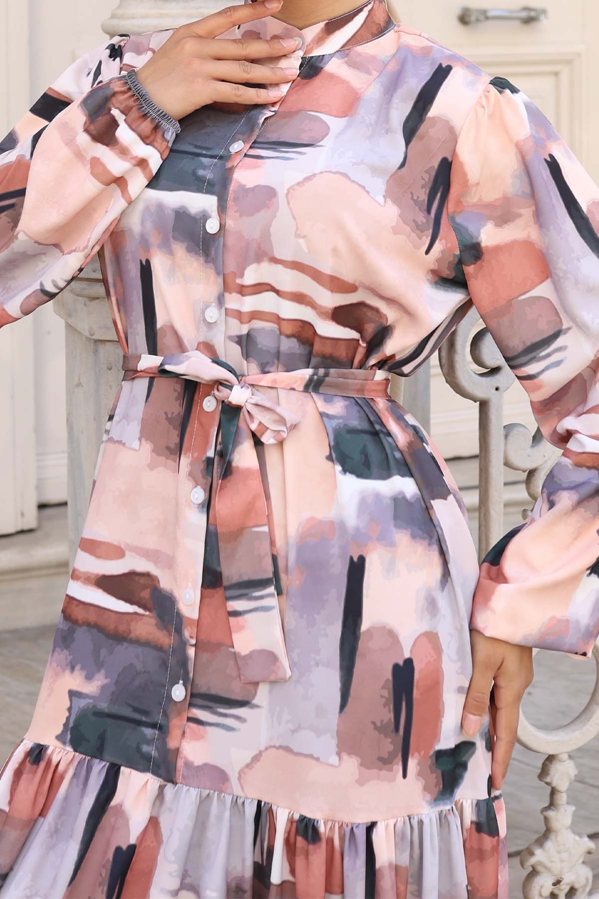 BNG Women Patterned Hijab Dress Brown 548 - Coatepec