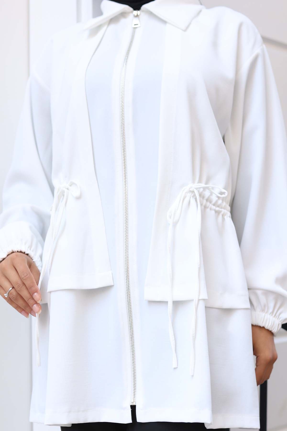 BNG Women Short Waistcoat with Ruffled Zipper White 3243 - Glendale