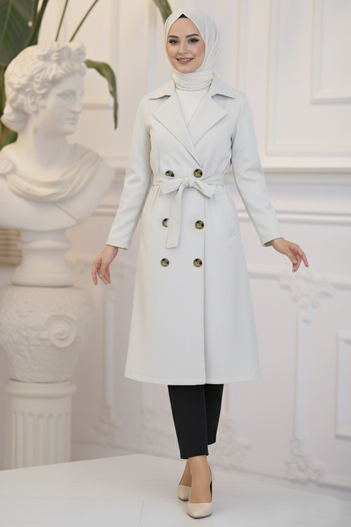 BNG Women Stone Color Hijab Trench Coat - Valladolid