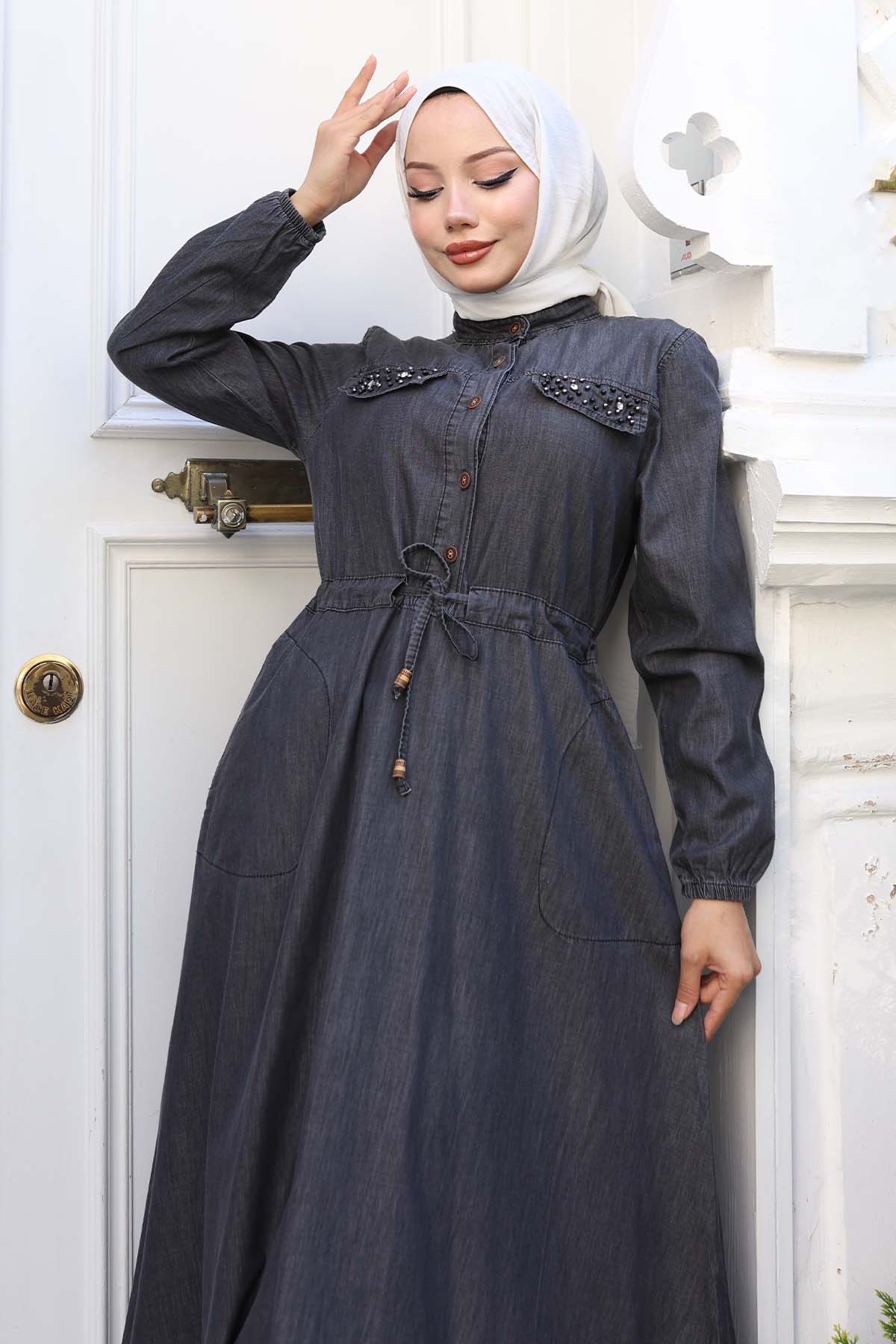 BNG Women Pockets Stone Detailed Denim Dress Black 6768 - Sevilla