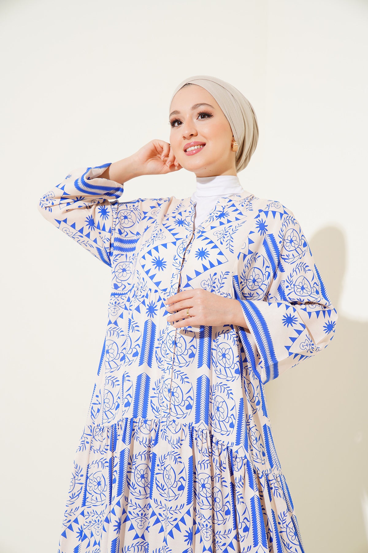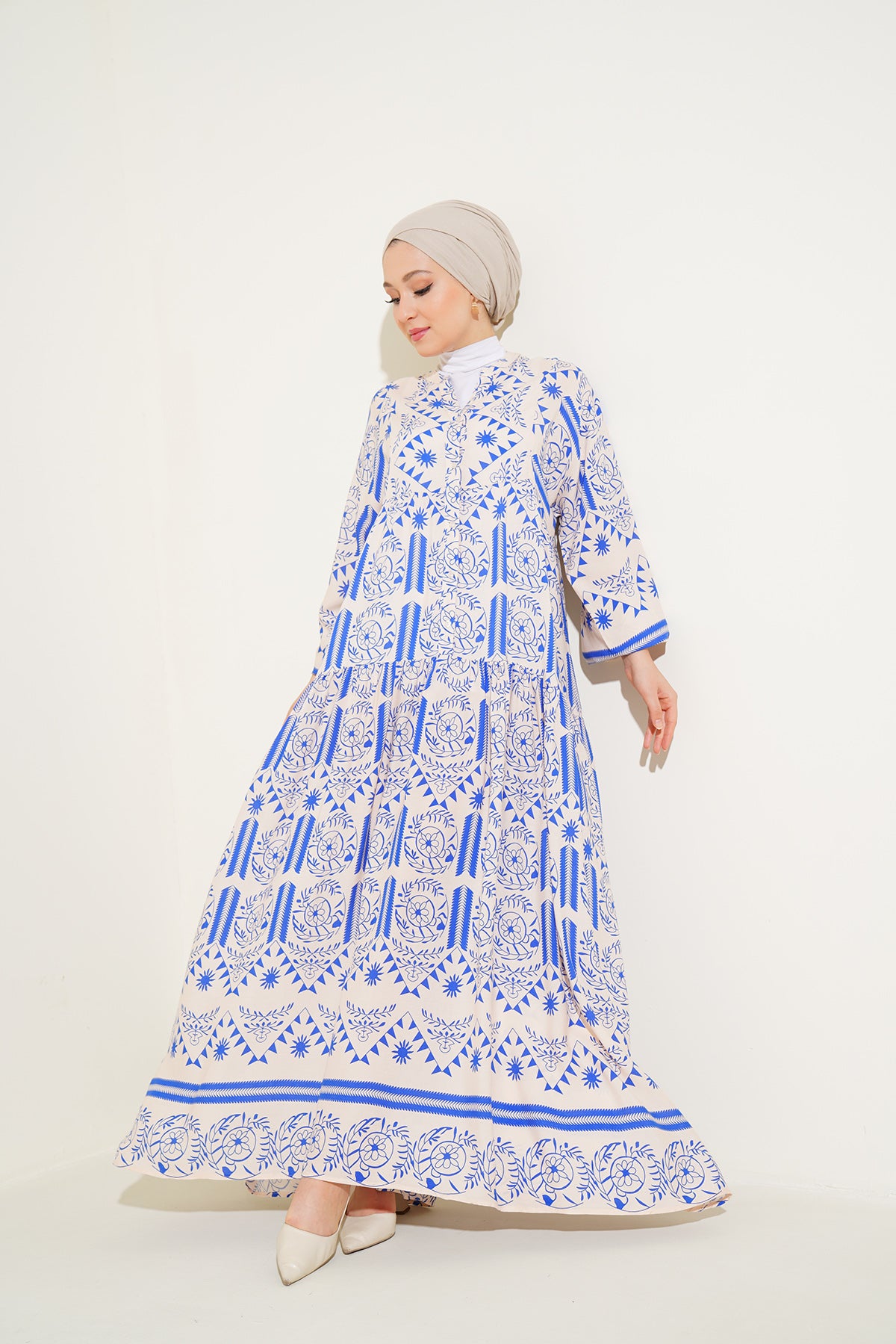BGD Women Authentic Patterned Hijab Dress - Cream - Feltham