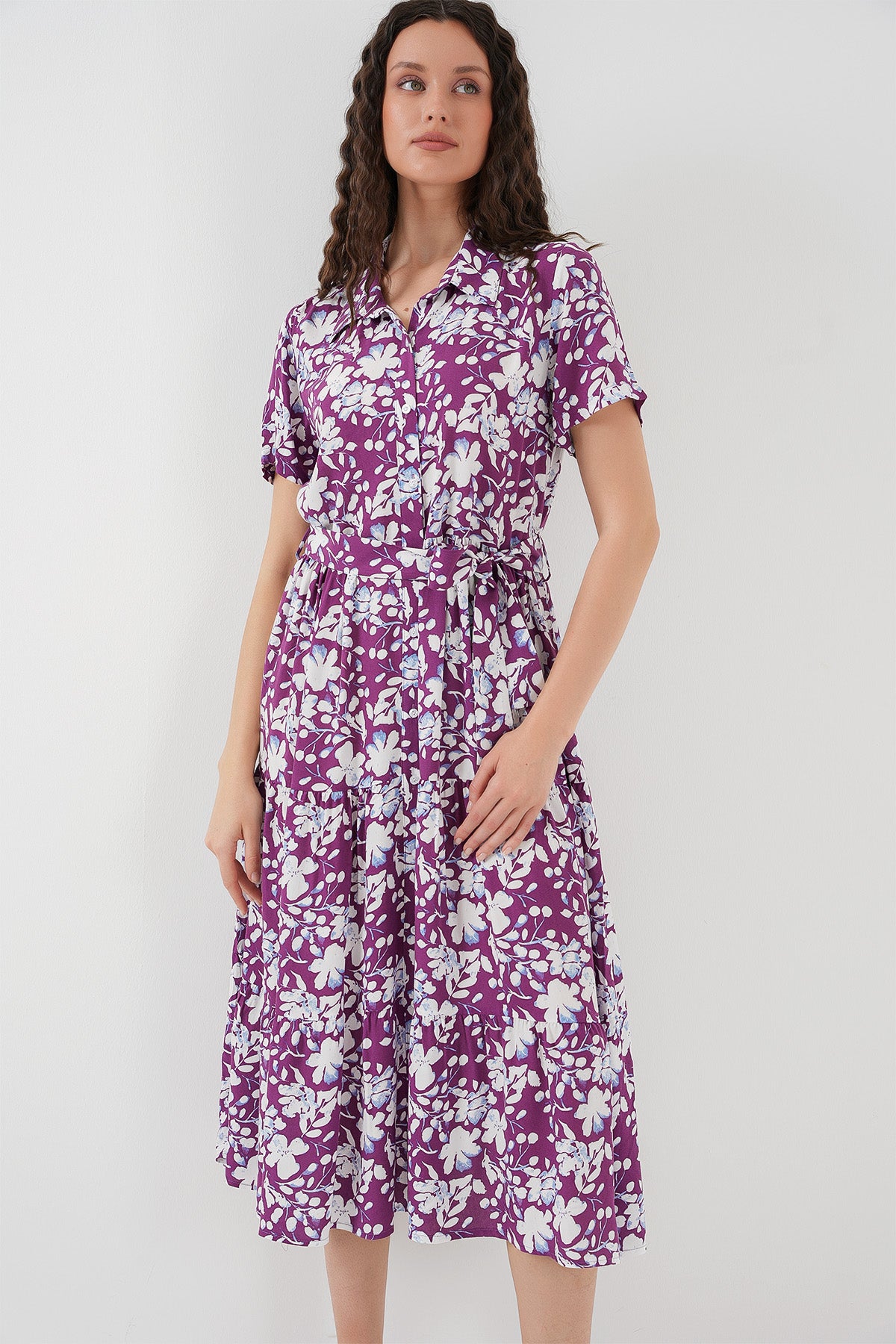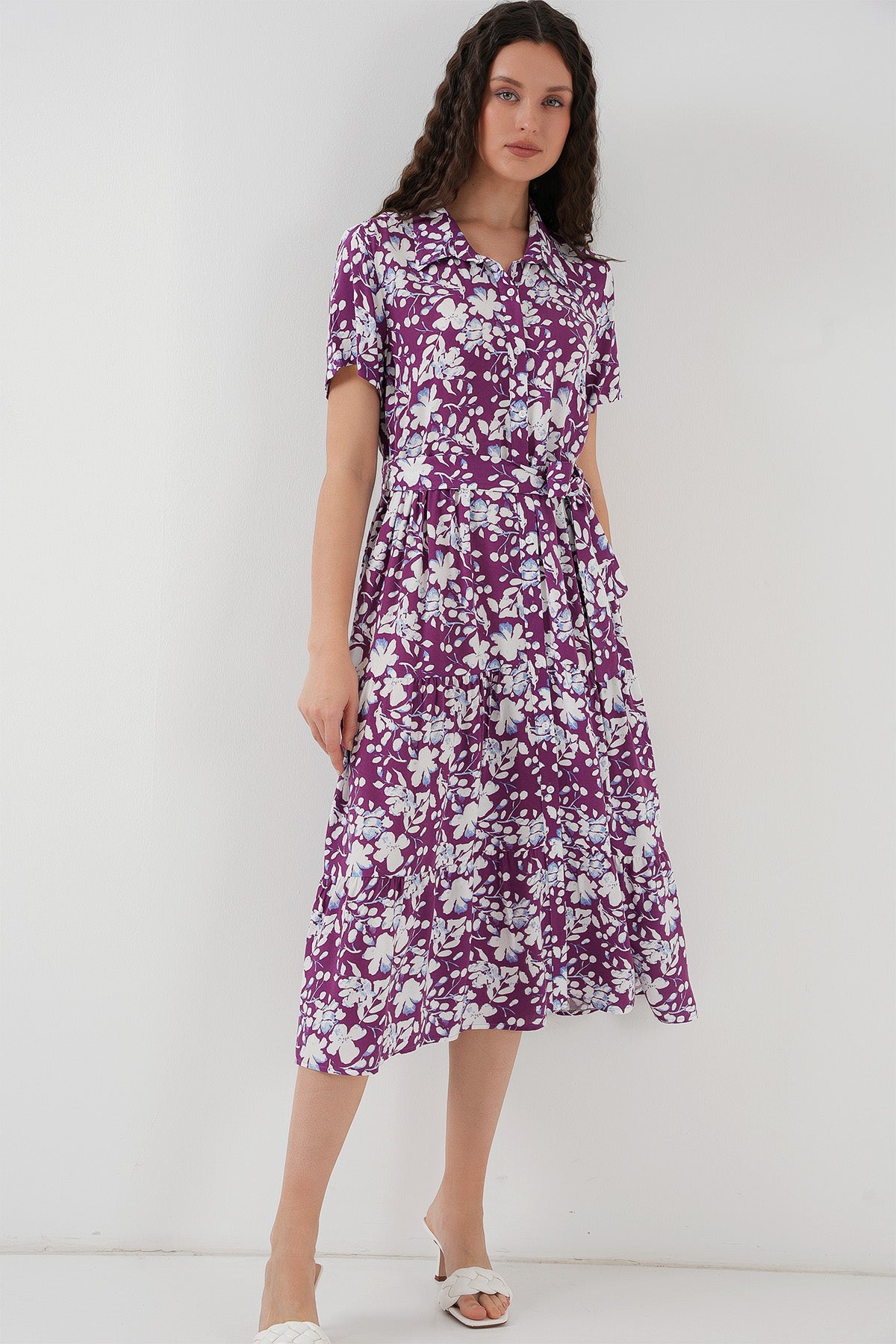 BGD Women Short Sleeve Patterned Dress - Purple - Rio Rancho