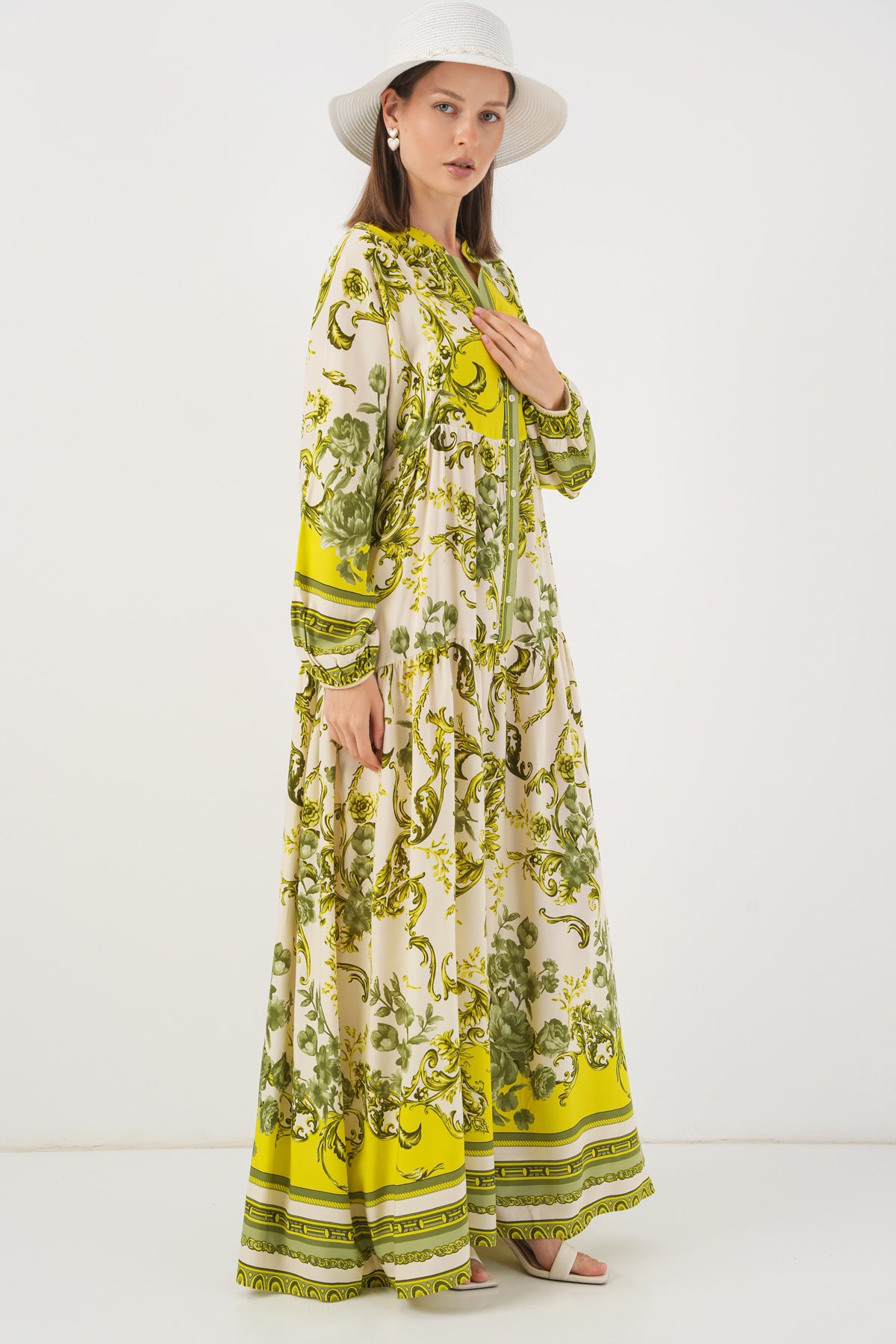 BGD Women Woman Patterned Long Hijab Dress 2585 - Dark Green - Hofheim