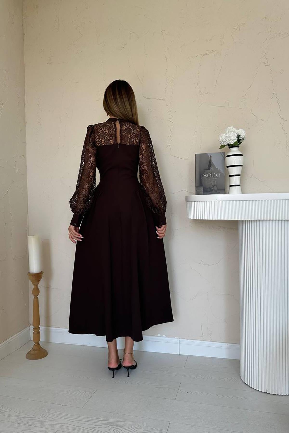 Wholesale Brown Lace Trimmed Ruched Satin Dress