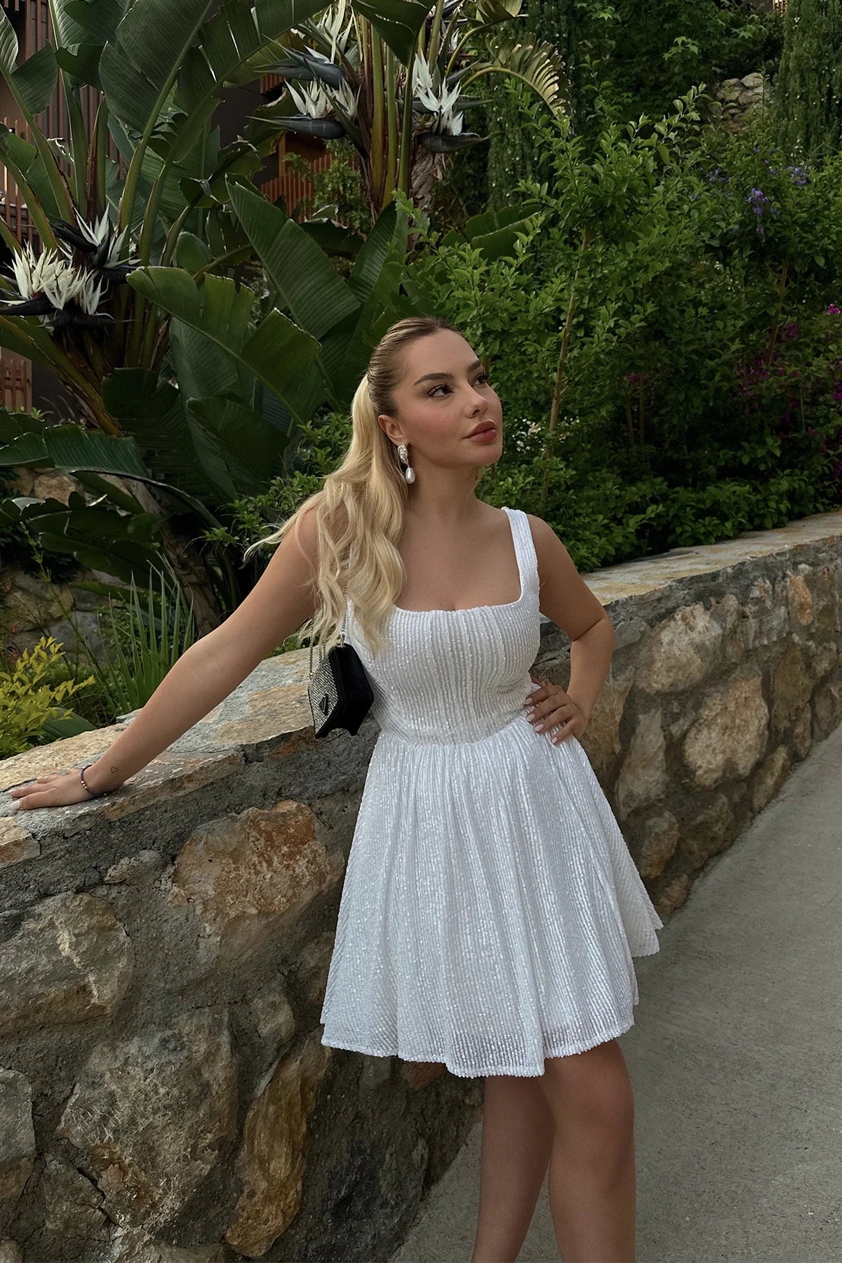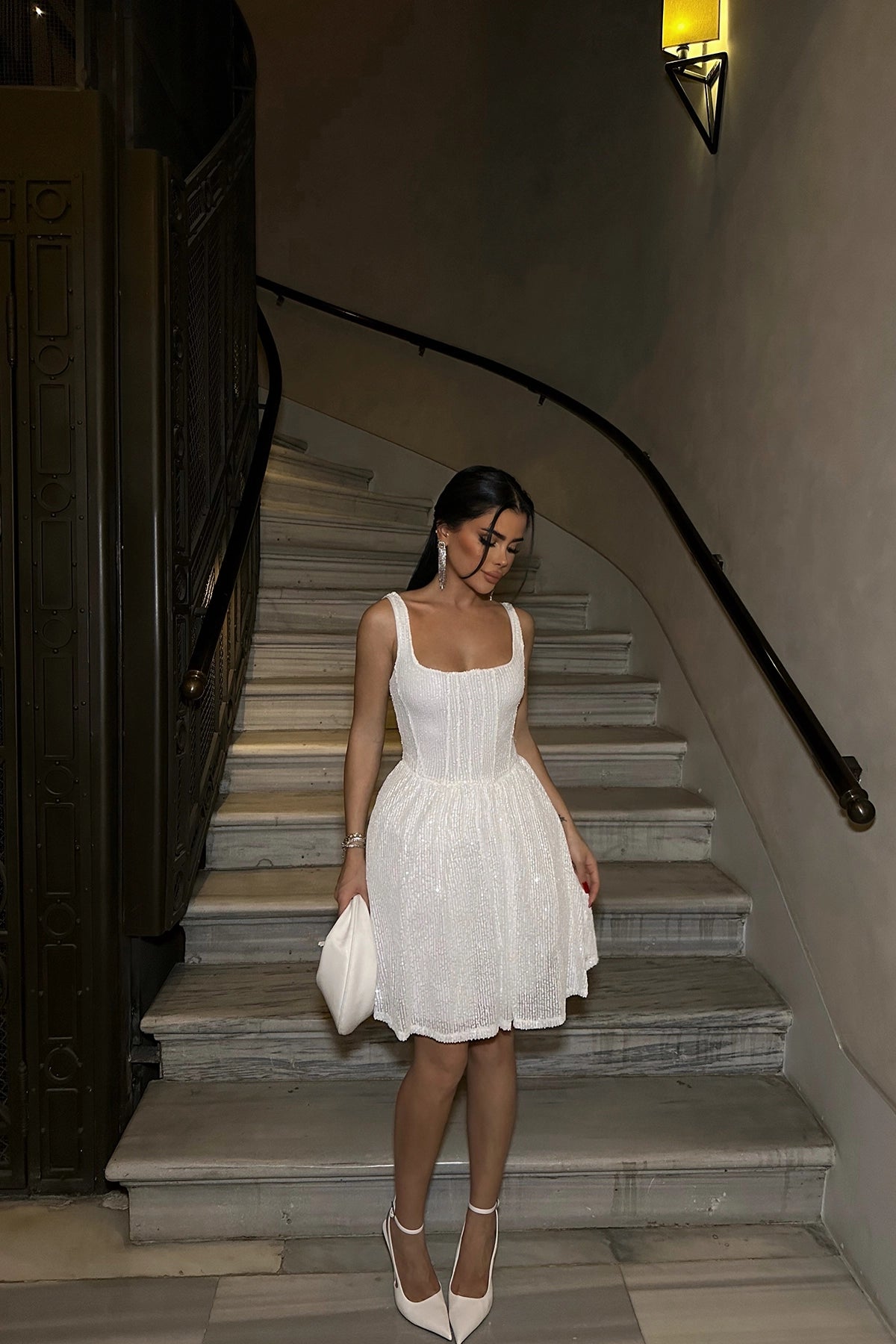 White Sequin Detail Dress