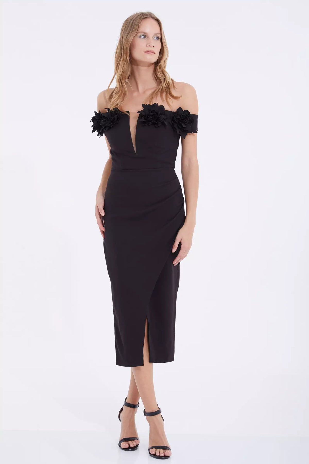 FRV Black crepe sleeveless midi dress - Bloomfield