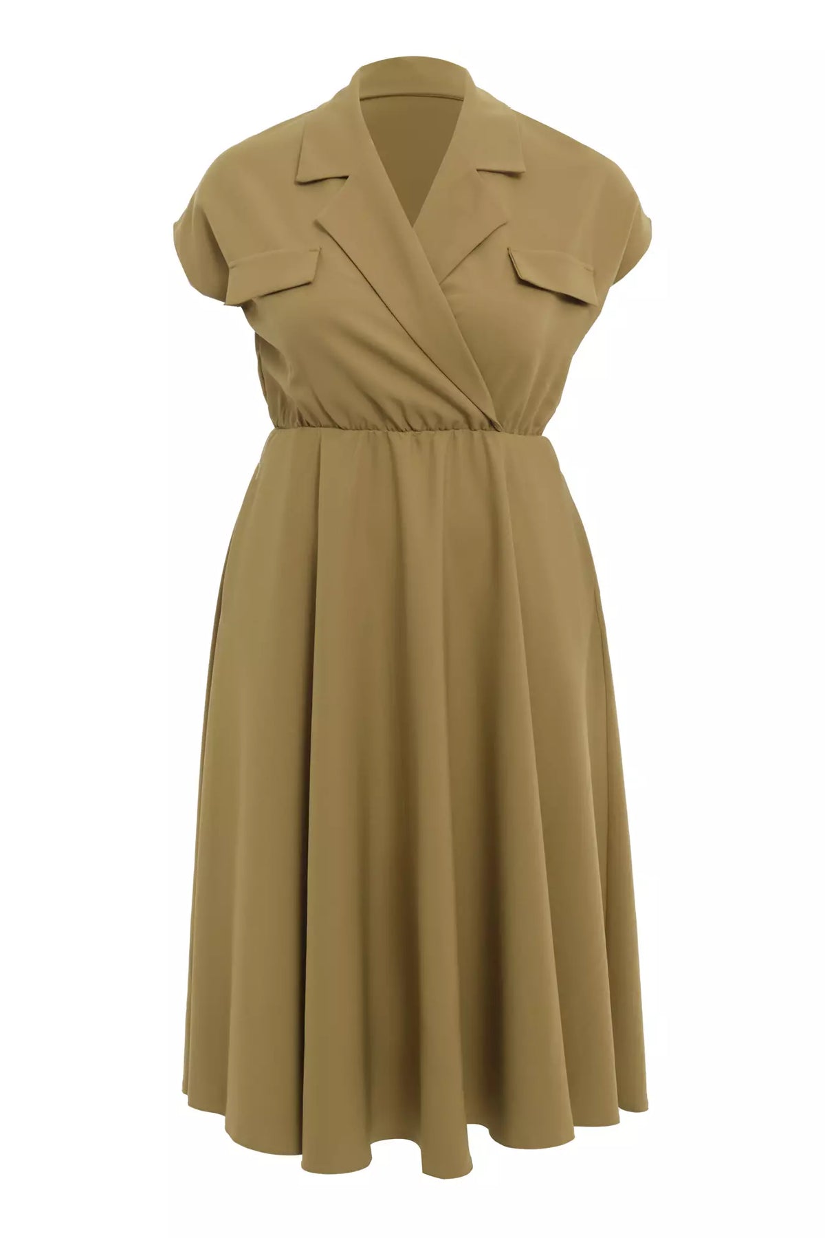 FRV Peanut green plus size crepe sleeveless midi dress - Guimarães