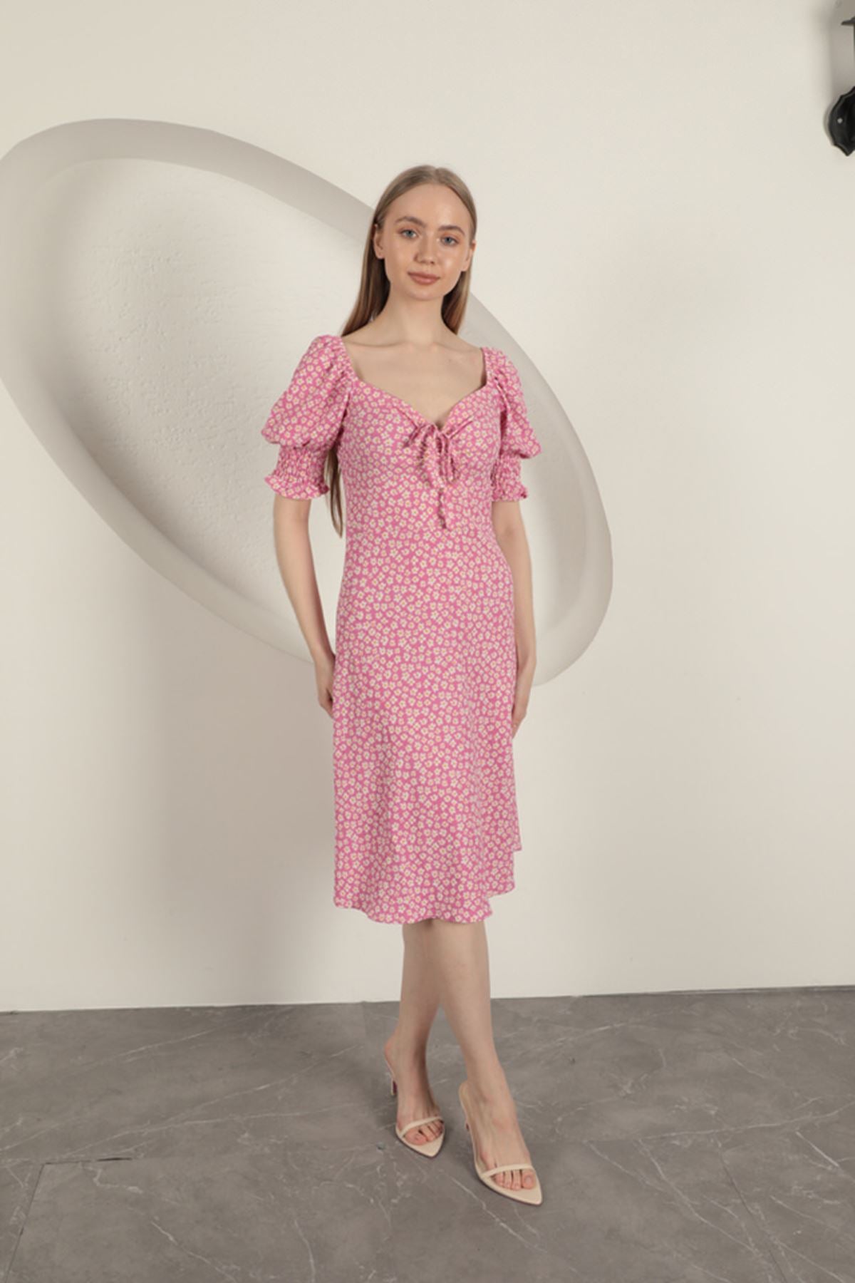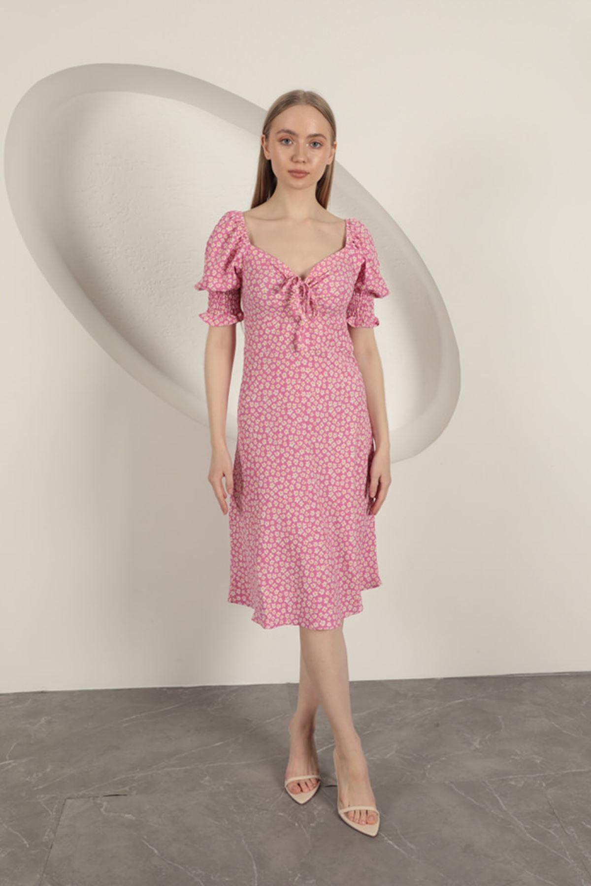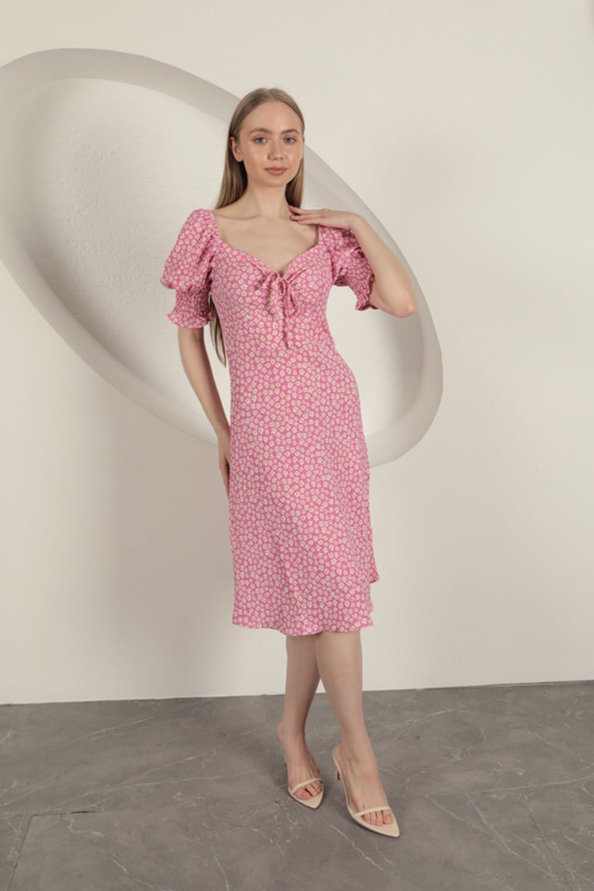 KKT Crepe Sleeve Gipel Dress-Fuchsia - Ourense